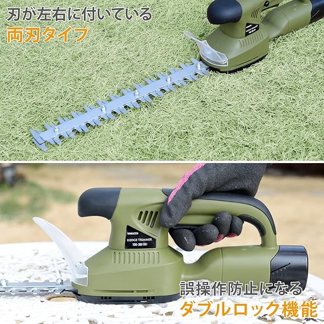山善(YAMAZEN) 10.8V 電動ヘッジトリマー 充電式 2.5Ah 刈込幅約300mm 両刃タイプ ダブルロック機能 庭木 剪定 生垣 刈り込み コンパクト 軽量 電気式 ヘッジトリマー グラストリマー YDH-300 カーキ | emishop315