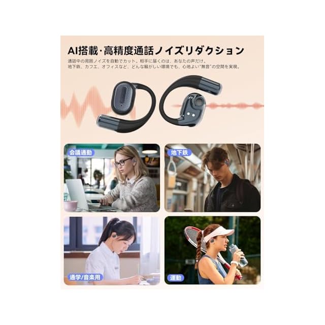 商品名:イヤホン bluetooth ワイヤレスイヤホン 4つシリコンマイク搭載 AIスマートENC通話ノイズキャンセリング 100時間音楽再生2025最新bluetooth 5.4 耳掛け型IPX7防水全帯域HI-FI音漏抑制 超低遅延 ブルートゥースイヤホンWEB会議/運動/ゲーム/テレワーク/通学/通勤/スポーツ/音楽用iPhone/Android対応