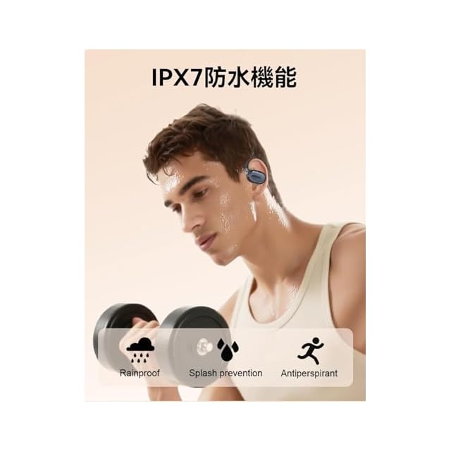 【OWSイヤホン&IPX7防水】IPX7 防水防汗。高い防水性能を実現した完全ワイヤレスイヤホンは、ジムやランニング、フィットネスなどのスポーツ中、雨の日でも安心して使用できます。 ※ご注意:充電ケースは防水仕様ではありません。