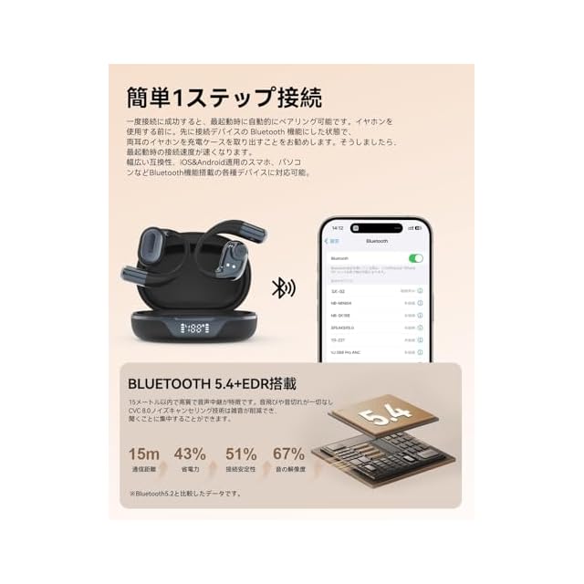 bluetooth ワイヤレスイヤホン 6つシリコンマイク搭載 AIスマートENC通話ノイズキャンセリング 90時間音楽再生2025最新bluetooth 5.4クリップイヤホン耳掛け型オープンイヤー イヤホンIPX7 防水全帯域HI-FI音漏抑制 超低遅延ブルートゥースイヤホン骨伝導の革新 会議/運動/ゲーム/通学/通勤/用iPhone/Android対応