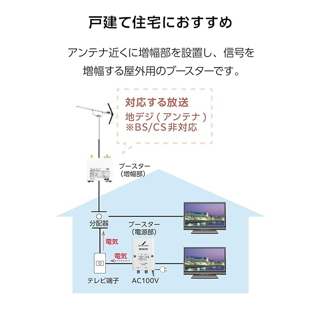 DXアンテナ ブースター 増幅器 UHF テレビ 38dB 家庭用 ケーブルの加工・接続状態の確認機能付 EC-38
