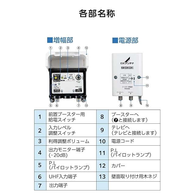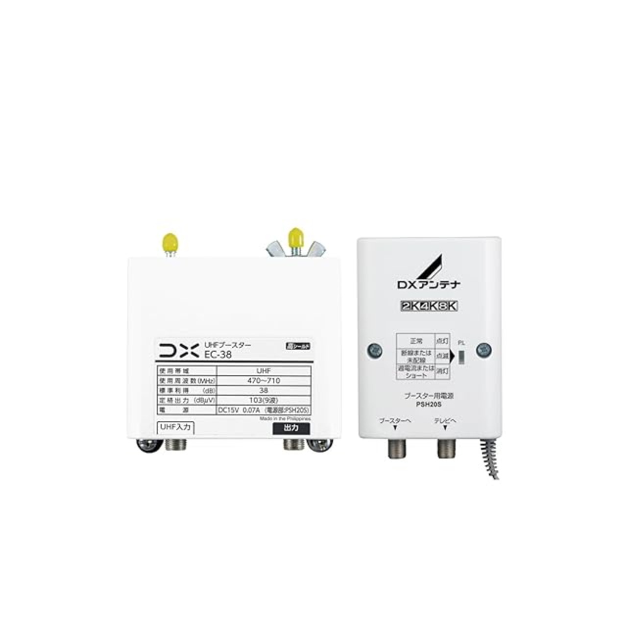 商品名:DXアンテナ ブースター 増幅器 UHF テレビ 38dB 家庭用 ケーブルの加工・接続状態の確認機能付 EC-38