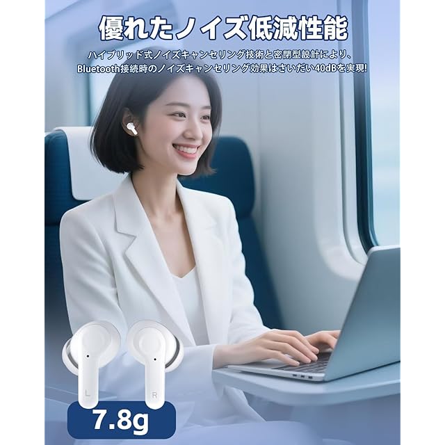 スタイリッシュデザイン: 洗練された白のカラーリングと人間工学に基づいた快適な装着感