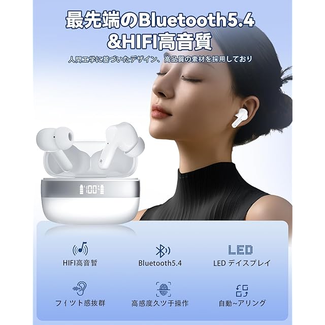 商品名:イヤホンBluetooth ワイヤレスイヤホン 多機能タッチスクリーン+ANC搭載 6つのシリコンマイク搭載 IPX7防水最大90時間再生 2025最新ブルートゥースイヤホン EDR+Bluetooth5.4搭載 カルナ型 HIFI音質低遅延接続瞬時 WEB会議/運動/ゲーム/テレワーク/通学/通勤/スポーツ/音楽用iPhone/Android対応