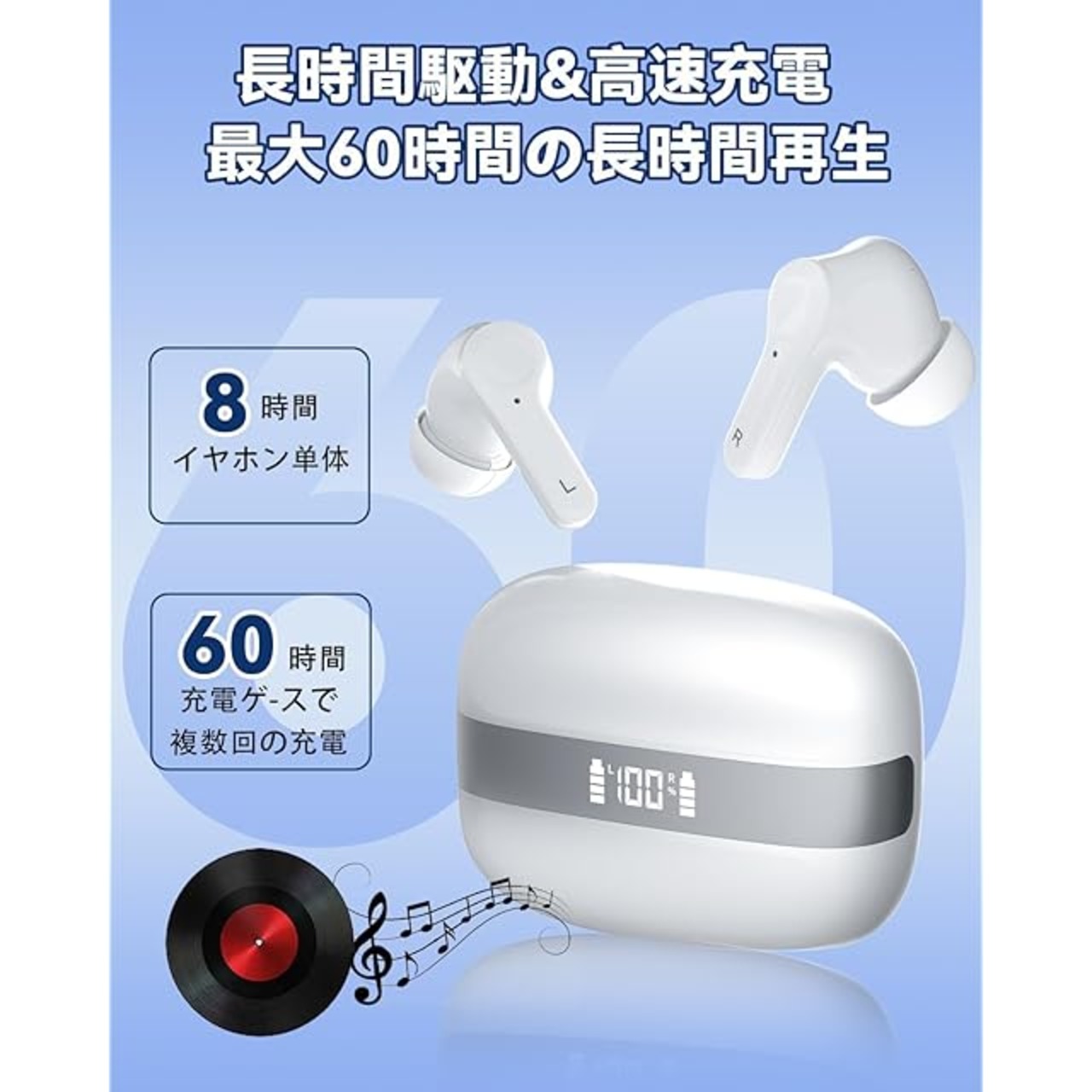 スタイリッシュなホワイトカラーのワイヤレスイヤホンは、最新のBluetooth技術を搭載し、快適な装着感と優れた音質を実現します。充電ケースにはLEDディスプレイを搭載し、バッテリー残量を一目で確認できる便利な機能付き。人間工学に基づいたデザインで、長時間の使用でも快適な装着感を維持。充電ケースにはストラップホール付きで持ち運びに便利です。タッチ操作対応で、音楽再生や通話のコントロールが簡単に行えます。防滴性能も備えており、軽い運動時でも安心して使用可能。自動ペアリング機能搭載で、ケースを開けるだけですぐに使用できます。充電ケースからの補充電にも対応し、外出先でも安心して使用できます。高音質なサウンドと快適な装着感で、音楽や通話を楽しむことができる実用的なワイヤレスイヤホンです。