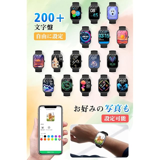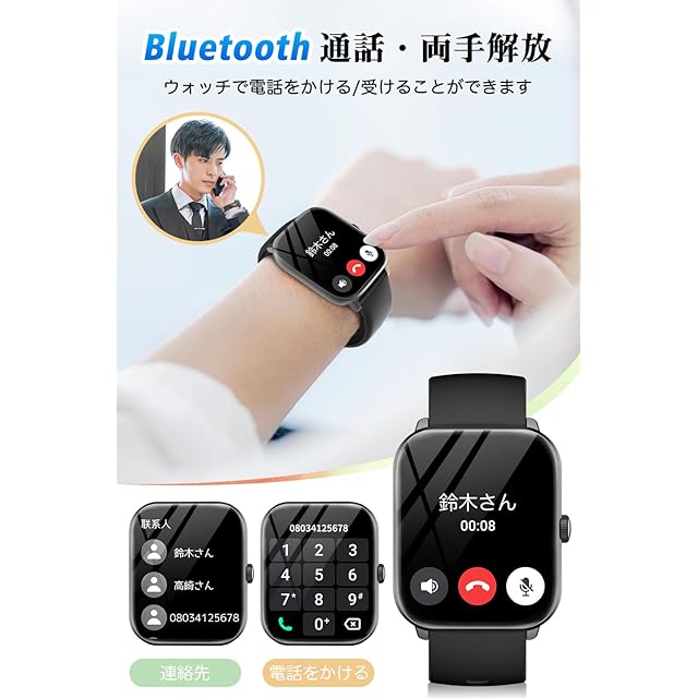 【2025最先端の通話機能・進化した音楽再生機能】スマートウォッチで電話かける/受けることができます。業界最先端のブルートゥース5.4 と搭載し、低消費エネルギーチップにより スマートウォッチをスピーディーな転送速度で通信範囲が広めに。接続の安定性も大幅に向上されました。さらに、前のスマートウォッチより進化した音楽再生機能:スマホで音楽が再生している時に、スマートウォッチより音楽が流れるか流れないか設定できます。(市販のスマートウォッチは設定できません。)