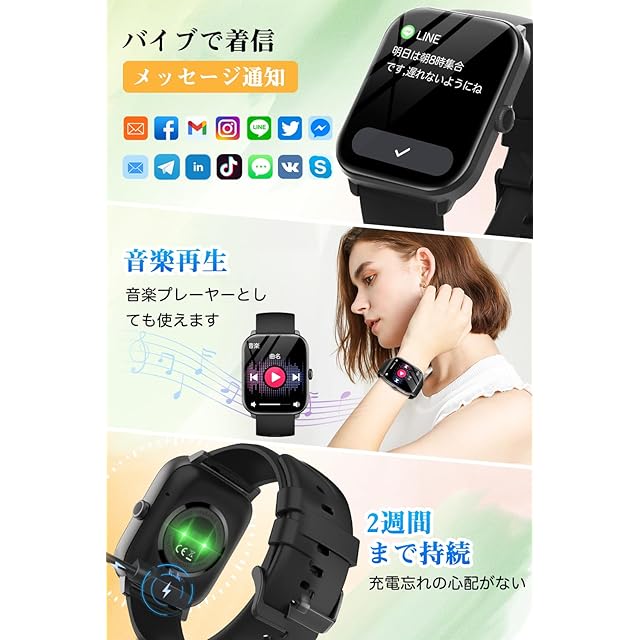 商品名:スマートウォッチ【2025改良最新型】Bluetooth通話機能付き 音楽再生 電卓機能 活動量計 iPhone対応&アンドロイド対応 SMS/Line通知 多機能スマートウォッチ 100種類運動モード 生活防水 メッセージ通知 腕時計 天気予報 スポーツウォッチ レディース メンズ 多種類文字盤 Smart Watch プレゼント (ブラック)