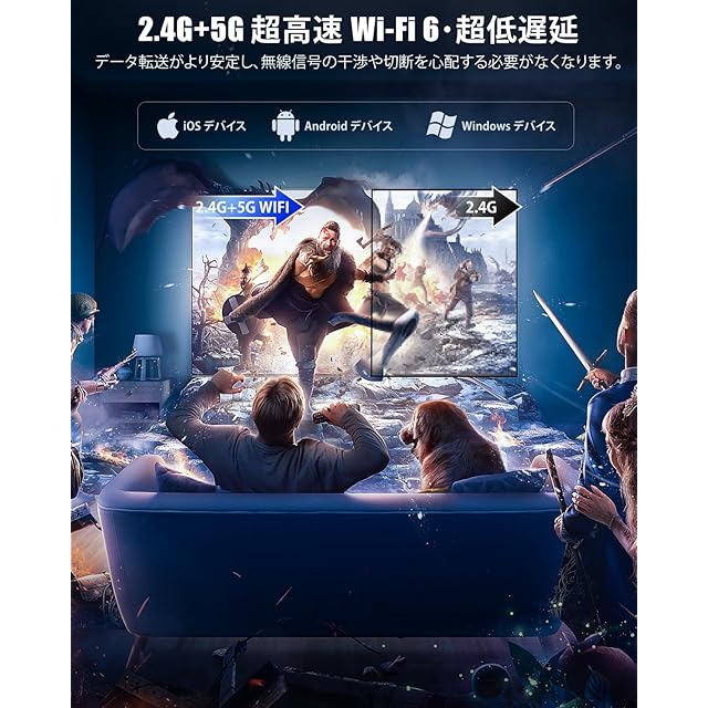 【超高速Wi-Fi 6・Bluetooth5.4・高音質HiFiスピーカー】ミニ天井プロジェクターは、独自の高精度チップ技術を採用し、超高速Wi-Fi 6接続を搭載していますので、2.4Gと5Gの両方の帯域に対応し、安定した信号と高速伝送を実現します。iOS、Android、Windowsデバイス(ミラーリング対応のスマートフォン、タブレット、デスクトップパソコンを含む)にWi-Fi経由で素早く接続し、スムーズで遅延のないオンラインゲーム、映画鑑賞、ビデオストリーミングを簡単にお楽しみいただけます。また、Bluetooth 5.4と高品質HiFiスピーカーを内蔵し、お気に入りのBluetoothスピーカーやヘッドホンからオーディオを再生することで、真に没入感のある3Dサウンド体験をお楽しみいただけます。