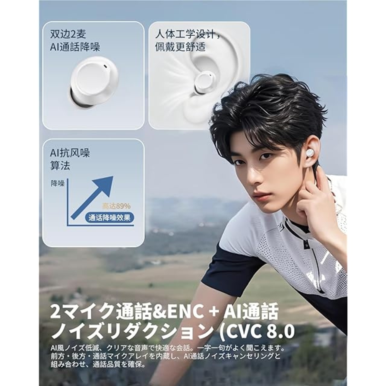 【ENC搭載 + AI通話ノイズリダクション】2つのシリコンマイク搭載 こちらのヘッドフォンは、ENC AIスマートノイズキャンセリング技術を搭載しており、周囲の騒音を正確に識別し、効果的に排除します。騒がしい街中や混雑した電車、オフィスなど、どんな環境でもクリアな通話を実現。AIによるノイズキャンセリングは、音声の出力を最適化し、自然な声で通話ができます。ビジネスでもプライベートでも、毎回の通話がスムーズに、ストレスフリーに。どんなシーンでも、クリアで効率的なコミュニケーションをお楽しみください。