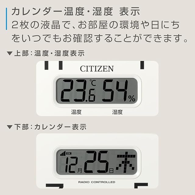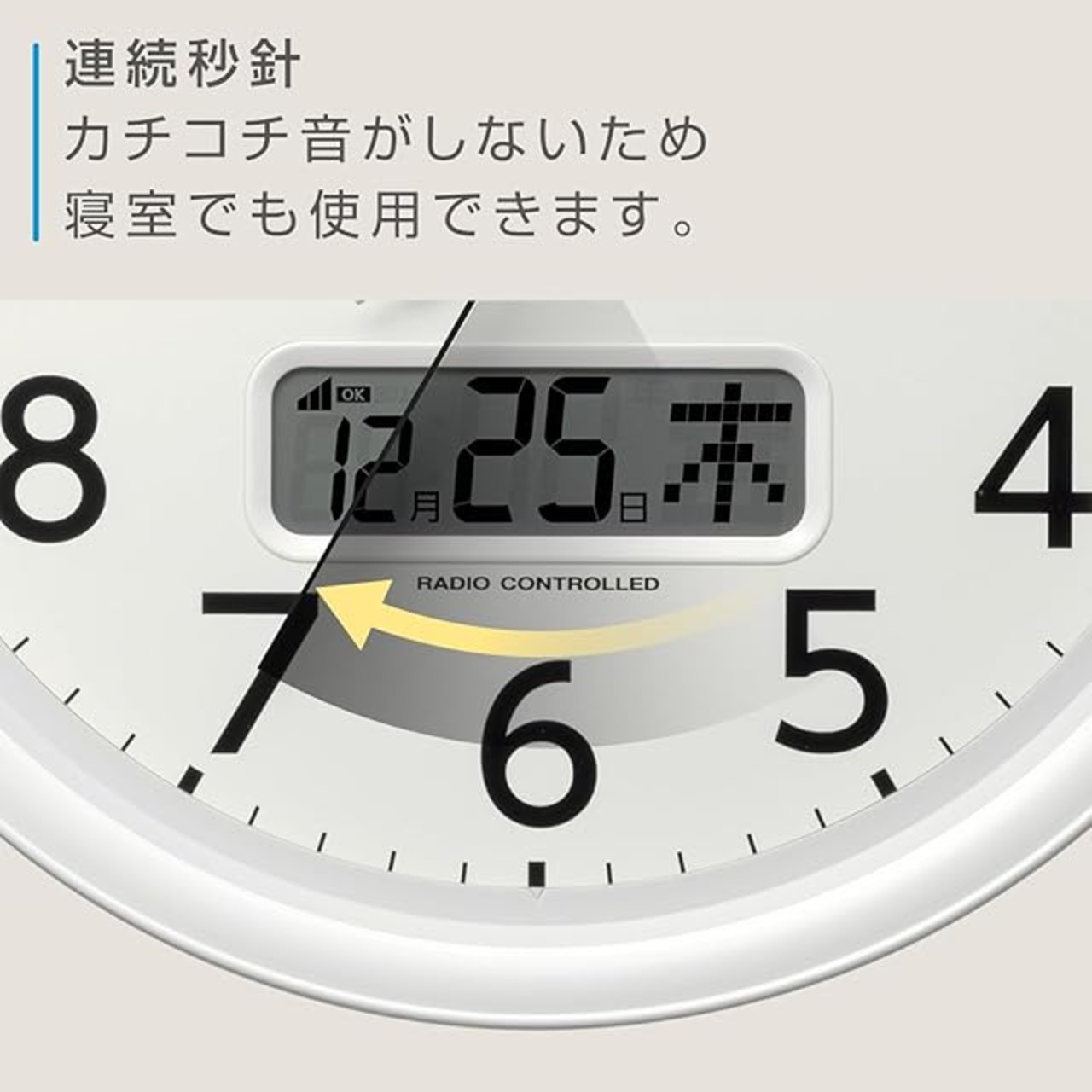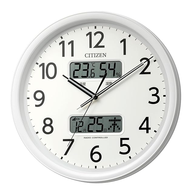 リズム(RHYTHM) シチズン 掛け時計 電波時計 アナログ 温度 湿度 カレンダー (デジタル 液晶表示) 静かな 連続秒針 白 Φ35x5.6cm CITIZEN 8FYA06-003 | emishop315