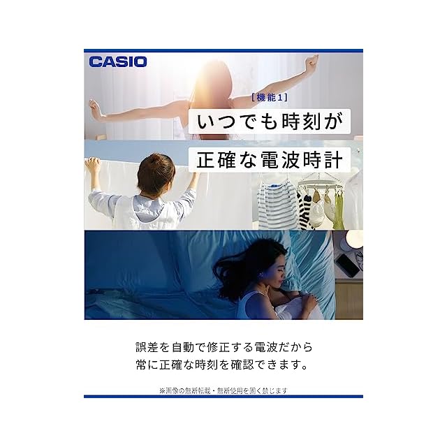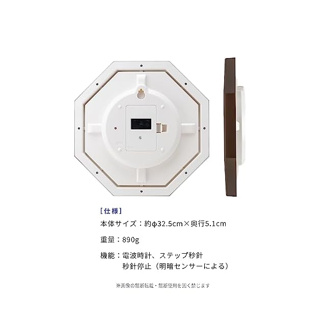 機能:電波受信機能(自動受信/手動受信、自動選局機能付き)、電波受信OFF機能、電波受信ランプ(電波受信結果をランプの点灯でお知らせ)、秒針停止機能(明暗判定センサーにより、暗くなると秒針が自動的に停止し、明るくなると自動的に動き出します)