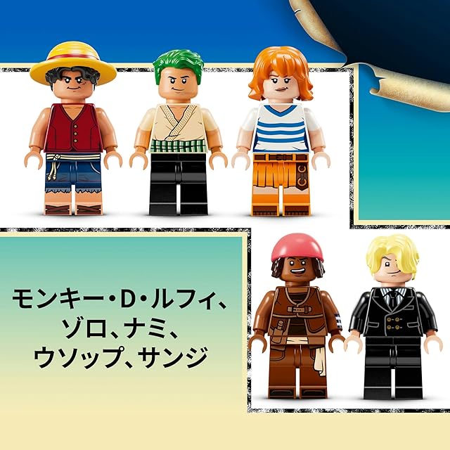 レゴワンピース ミニフィギュア – ルフィ、ゾロ、ナミ、ウソップ、サンジのミニフィギュアが付属しています