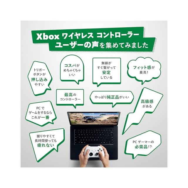「Xbox ワイヤレス コントローラー」 は洗練された形状に滑りにくく操作しやすい加工を施した、より快適にゲームをプレイするために開発されたコントローラーです。