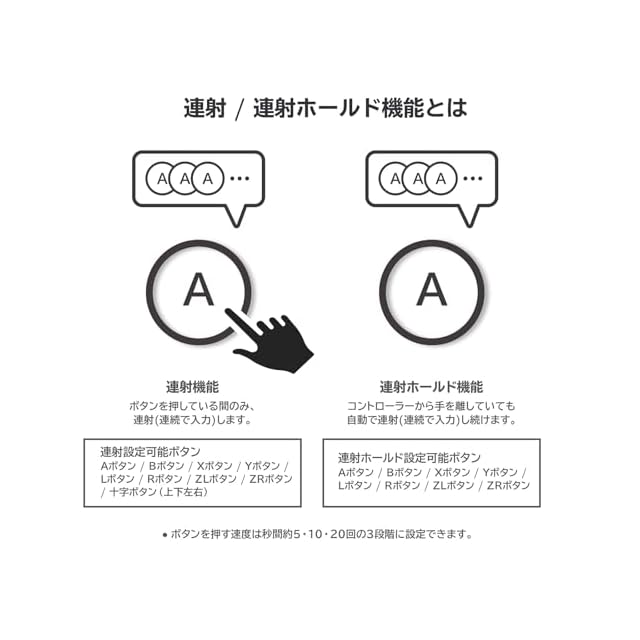 連射ホールド設定可能ボタン:Aボタン / Bボタン / Xボタン / Yボタン / Lボタン / Rボタン / ZLボタン / ZRボタン