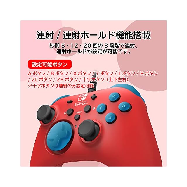 連射設定可能ボタン…A / B / X / Y / L / R / ZL / ZR / 方向ボタン(上下左右)※ 方向ボタン(上下左右)に連射ホールド機能の設定はできません。