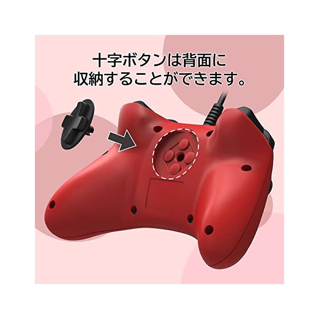 十字ボタンつけ外し機能・・・本品は十字ボタンの付け外しができ、十字ボタンと方向ボタンの両方で遊ぶことができます。はずした十字ボタンは背面に収納することができます。