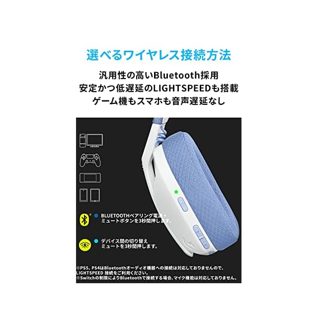 商品名:Logicool G(ロジクール G) ゲーミングヘッドセット G435 LIGHTSPEED & Bluetooth ワイヤレス ヘッドセット 軽量 165g 内蔵マイク 18時間連続使用 USB ドングル Dolby Atmos対応 ヘッドホン PC PS4 PS5 スマホ 対応 G435WH 国内正規品