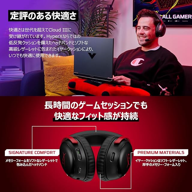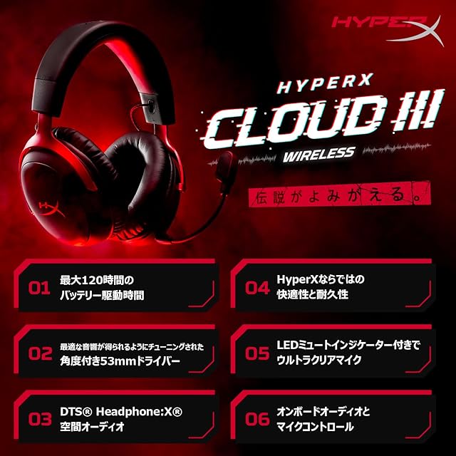 ハイパーエックス(HyperX) HyperX Cloud IIIワイヤレスゲーミングヘッドセット DTS Headphone:X空間オーディオ 53mmドライバー搭載 Cloud IIの 快適性 ブラック‐レッド PC、PS5、PS4、Xboxシリーズ、Nintendo Switch、モバイル77Z46AA | emishop315