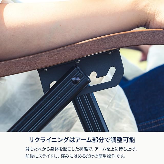 ✅【ストレスを感じにくい肘置き】 クライマックスローチェアの最大のこだわりポイントは曲線美を描く肘置きの形状。体に負担がかからない、自然な状態で使えるように設計しました。肘を置いた瞬間にリラックスタイムに入れるような、座り心地の良いローチェアです。