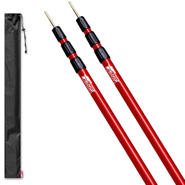 FIELDOOR(フィールドア) 伸縮式 アルミテントポール 直径28mm (高さ89~230cm) 3継無段階調節 2本セット 【レッド】 収納袋付き 振り出しタイプ 簡単 高さ調節 回すだけ ロック スライド | emishop315