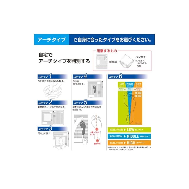 アーチタイプはアーチ測定方法で測定いただき、ご自身に合ったタイプをお選びください