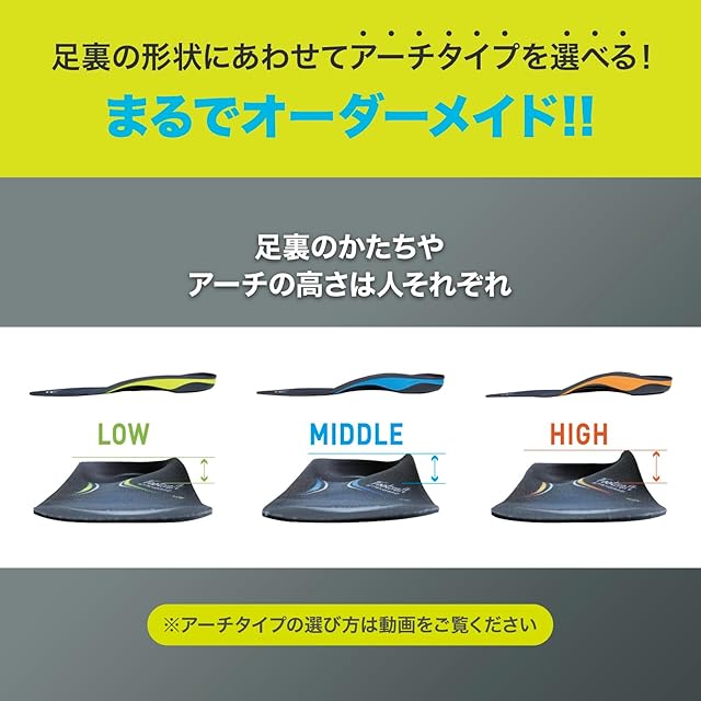 アーチタイプはアーチ測定方法で測定いただき、ご自身に合ったタイプをお選びください