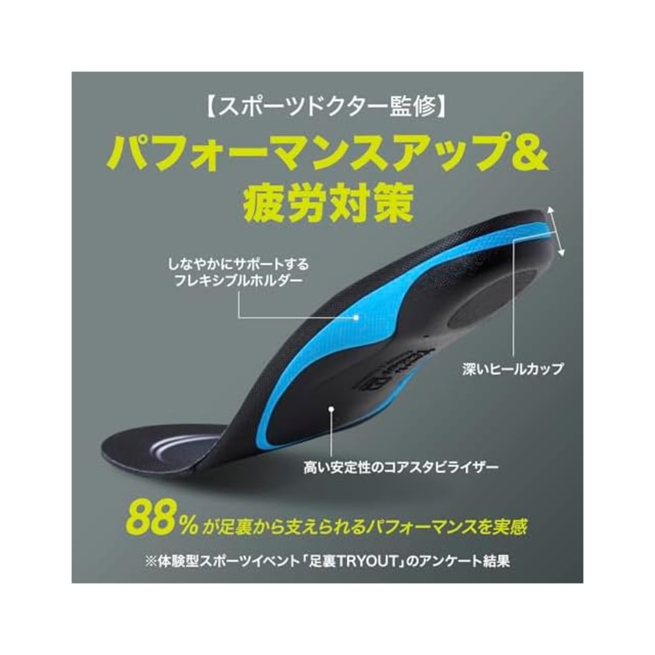 「アーチ(土踏まず)」や「かかと」をしっかりサポートすることで、カラダ全体のトラブル対策につながります。