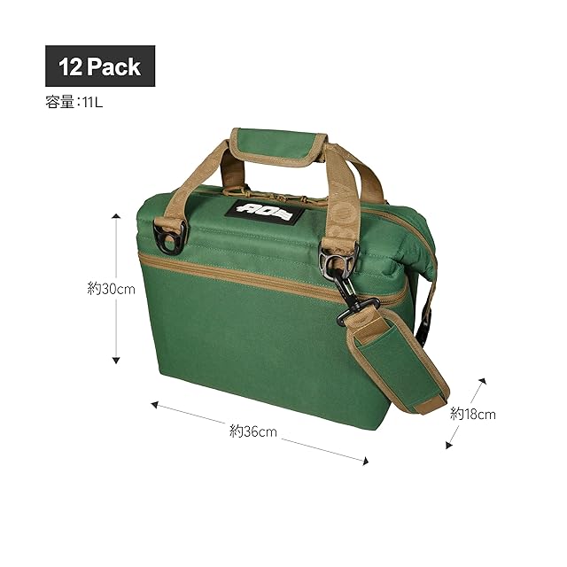 AO Coolers (エーオークーラーズ) 12パック キャンバス ソフトクーラー アメリカン グリーン 11L 軽量 保冷 クーラーボックス 保冷バッグ クーラーバッグ (日本正規品) 【正規品5年】 | emishop315
