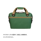 ■取り外しができ、長さ調節が可能なショルダーストラップ付き。■小物の収納に便利なフロントポケット付きで収納力をプラス。■サイドのバックルを外せば背の高いものも収納できるトートバック型に。■シンプルなデザインからアウトドアのみならず様々なシーンでご利用頂けるソフトクーラーです。