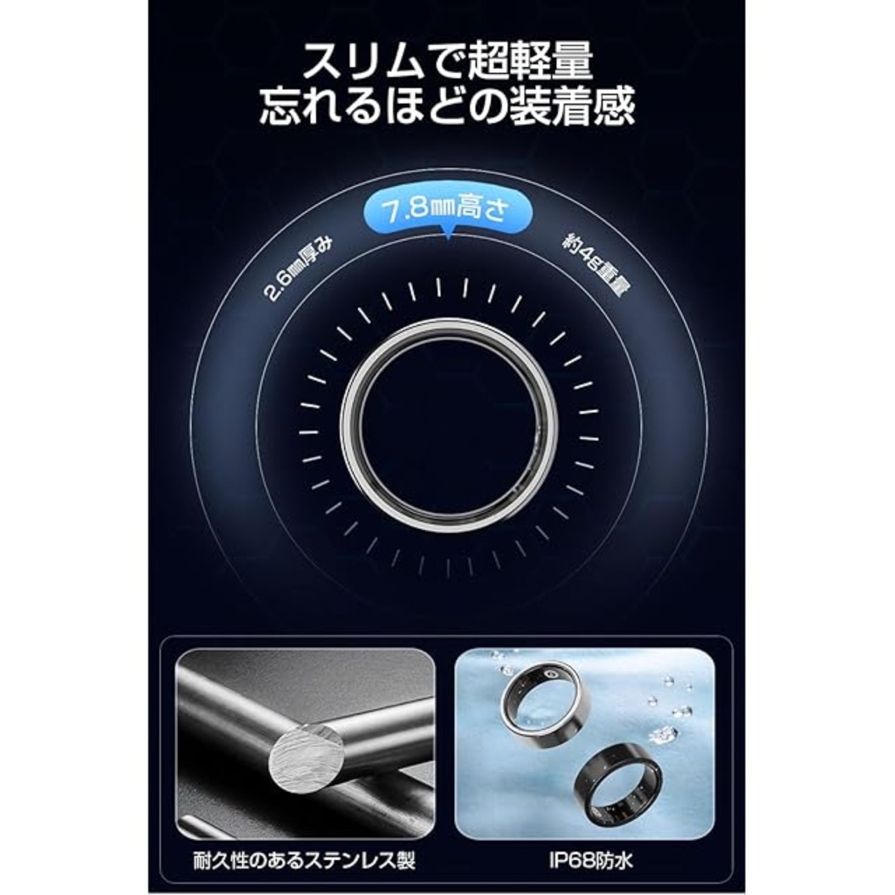 商品名:スマートリング 健康管理 【新登場 & 長時間使用可能】 Android/Iphone対応 睡眠管理 スマート指輪 ヘルスケア 睡眠計測 8種類運動モード 3種類データ測定機能 IP68防水USB磁気充電 カメラ制御 小型 超軽量 カロリー 運動距離 歩数計 活動量計 smart ring 男女兼用 日本語取扱説明書 磁気充電ケーブル付き プレゼント (ブラック, 11号(64.9mm))