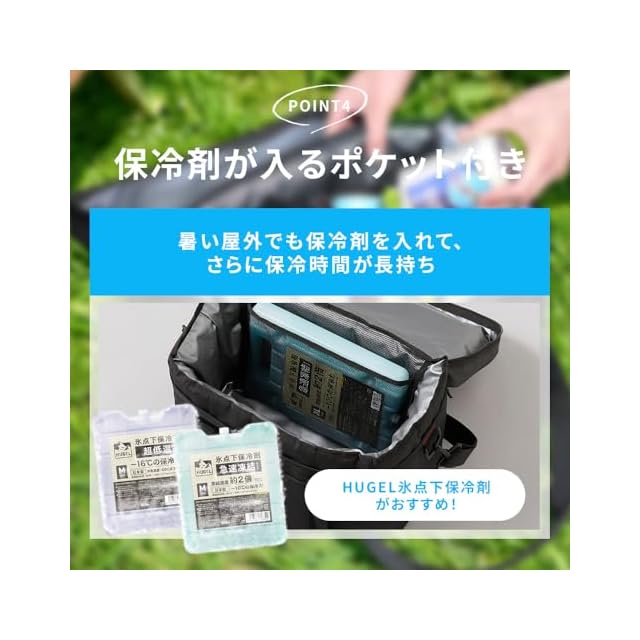 【保冷剤が挟めるポケット付き】熱い屋外でも保冷剤を挟めば、さらに保冷時間が長持ち。(※保冷剤は付属しません。)