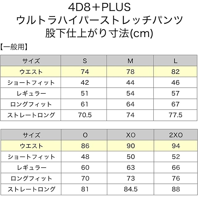 サイズ展開 S、M、L、O、XO、2XO