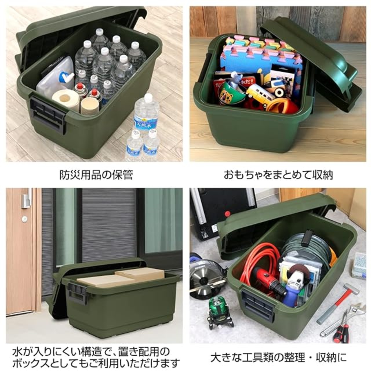商品名:JEJアステージ 収納ボックス 日本製 簡易密閉型 パッキン付き アウトドア キャンプ スツール 耐荷重100kg 積み重ね [グランポット 33L GPD-440G] グリーン 防災 幅44×奥行40×高さ38cm