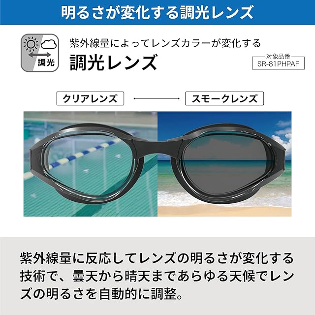 商品名:[スワンズ] 日本製 スイミングゴーグル アセンダー SR-81PHPAF CLA 調光クリアtoスモーク ASENDER レーシング クッション付 Fina認証済み