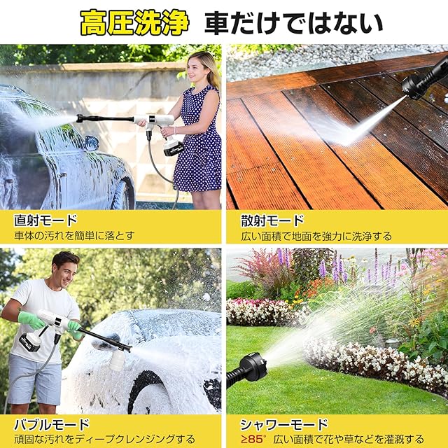 【2025新登場強化版】高圧洗浄機 コードレス 充電式 バッテリー式 洗車機 20000mAh マキタ互換バッテリー 残量表示 洗車店監修 750W 軽量 小型 自吸式 噴射距離10M 洗車 家庭用 2段階 6in1ノズル 水道接続不要 収納ケー付き 持ち運び便利 庭/屋外/階段/ガラス/ブロック塀/玄関/ベランダ/浴室/年末大掃除/キャンプ 日本語取扱説明書 イェロー