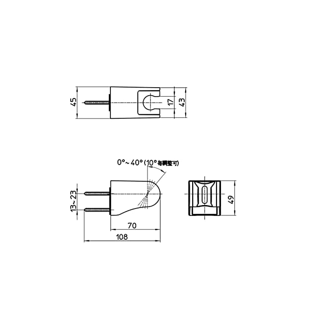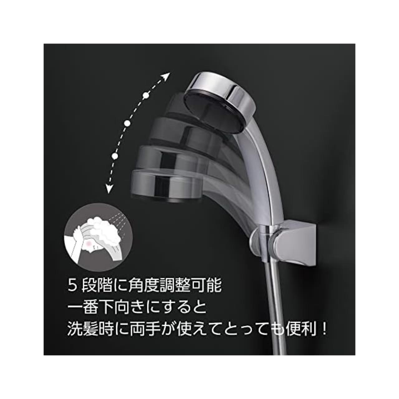 シャワー掛具にシャワーヘッドを差し込んだ状態で、角度を10°刻みで5段階に調整可能です。お好みの角度に合わせて使えます。