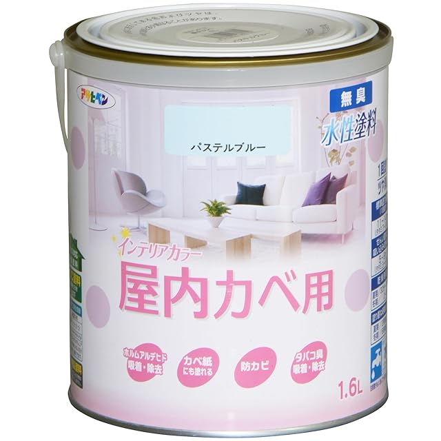 アサヒペン 塗料 ペンキ NEW水性インテリアカラー屋内カベ 1.6L パステルグリーン 水性 室内 壁用 艶消し 1回塗り 無臭 防カビ 低VOC シックハウス対策品 日本製 | emishop315