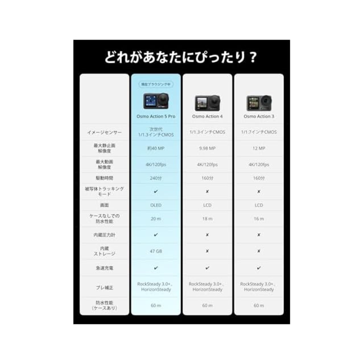 商品名:DJI Osmo Action 5 Pro スタンダードコンボ アクションカメラ小型 1/1.3インチセンサー付き 防水 4K/120fps映像 被写体トラッキング 手ブレ補正 デュアルOLEDタッチ画面 スポーツ vlog ウェアラブルカメラ 動画撮影用カメラ