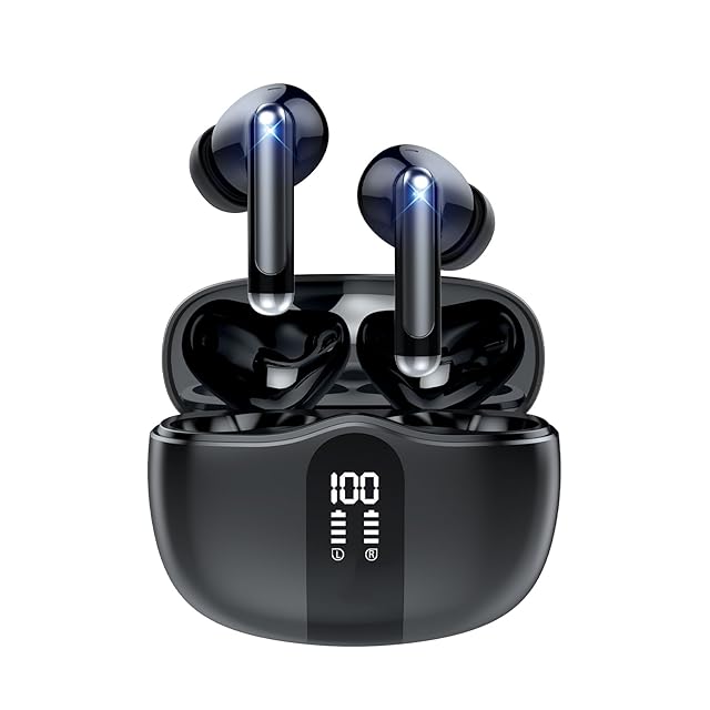 【2025新開発音質重視モデル ・中高低音バランスが良く】イヤホン bluetooth ワイヤレスイヤホン ブルートゥース イヤフォン Bluetooth5.4 LEDディスプレイ ダブル マイク ENCノイズキャンセリング Hi-Fi音質 ハンズフリー通話 ぶるーとぅーす カルナ型 35時間音楽再生 iPhone/Android 適用 通勤通学/スポーツ/ゲーム (漆黒) | emishop315