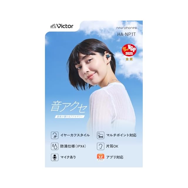 商品名:JVCケンウッド Victor HA-NP1T-H ワイヤレスイヤホン Bluetooth Ver.5.3 オープンイヤー イヤーカフ アプリ対応 マルチポイント 合計24時間再生 マイク付き 小型 軽量 防水 音アクセ アイスグレー
