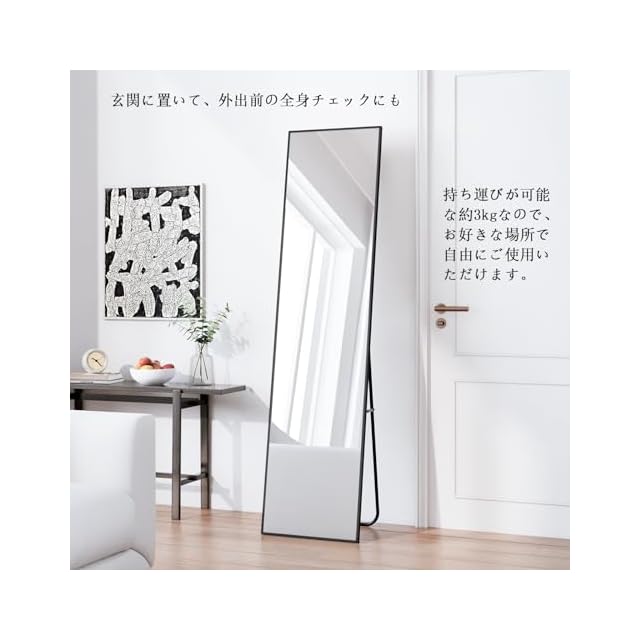 【簡単に移動・設置可能】全身鏡は軽量で持ち運びやすく、家具の配置が頻繁に変わる家庭に適しています。住所変更が必要な場合でも、簡単に持って行くことができます。