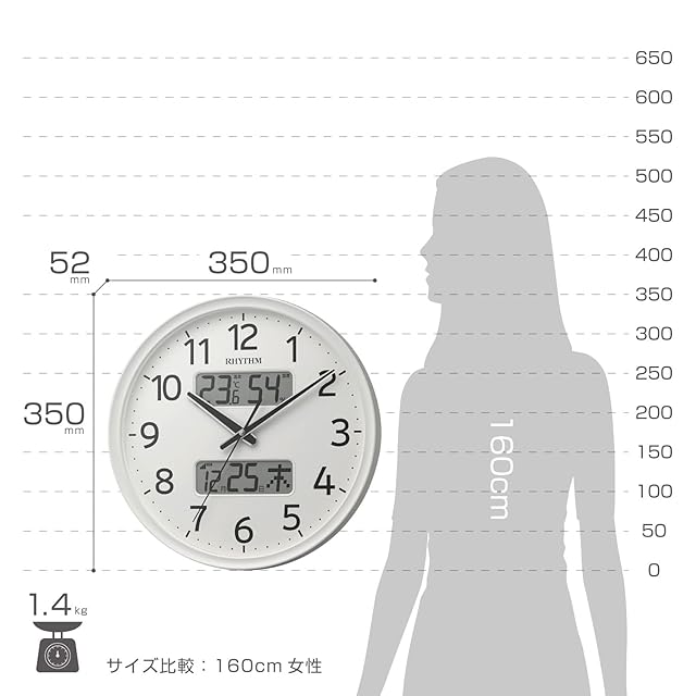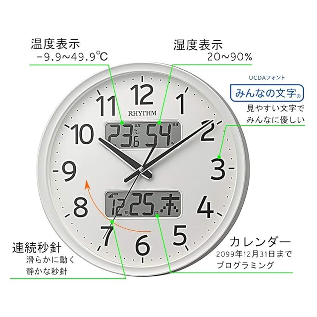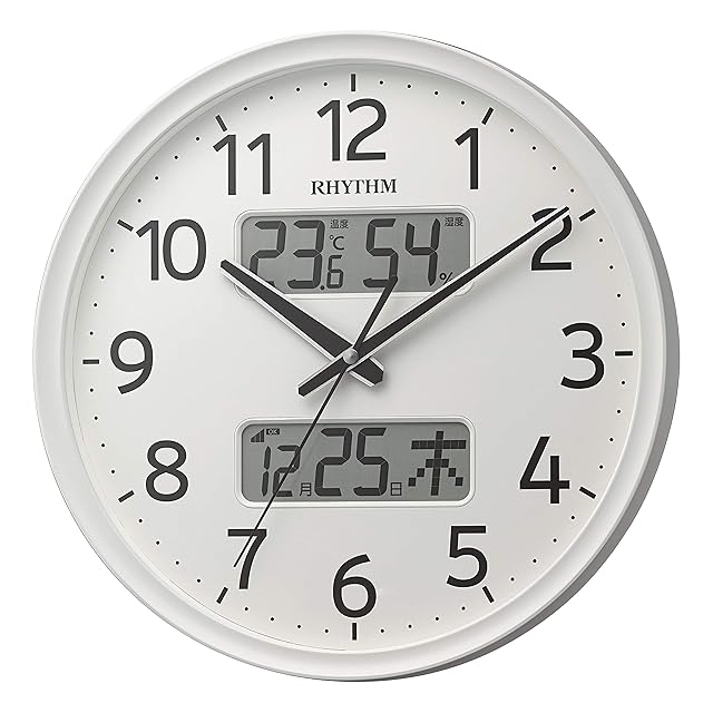 商品名:リズム(RHYTHM) 掛け時計 電波時計 アナログ 連続秒針 温度 湿度 カレンダー 白 Φ35x5.3cm 8FYA03SR03