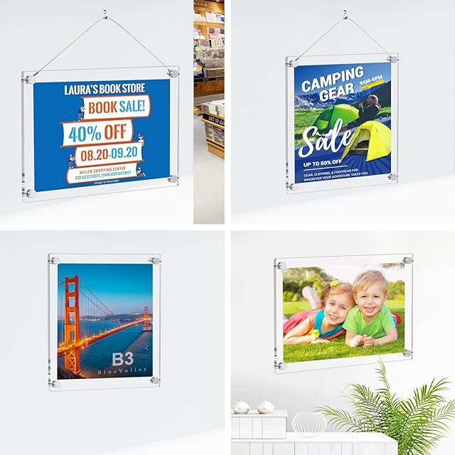 BlueValley B3 額縁、アクリルスタンド、アクリルフォトフレーム、スタンドタイプ 写真フレーム、両面透明ポスターフレーム、写真立て 壁掛け兼用 、展示ピクチャー・ポスター・絵画・賞状用 横縦置き (収納サイズ: 353x500mm)