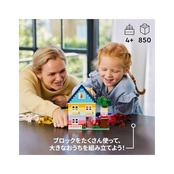 850ピースのレゴセット ? 6種類の基本モデルのうち青いおうちのサイズは、高さ約15cm。お子さまの創造力のおもむくままに高さも形も自在に変えられます
