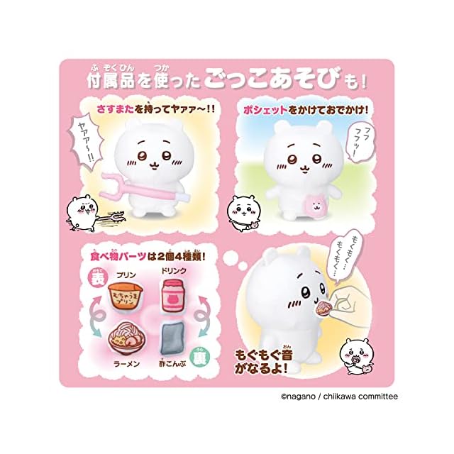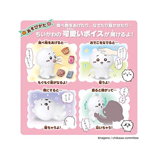 さらに、ご飯をあげると「もぐもぐ音」がしたり、頭をなでると歌ったり、寝かせると「ムニャムニャ」眠ったり、 上下に振ると「イヤッ」と嫌がるなど、ちいかわらしい可愛いリアクションを楽しむことができます。
