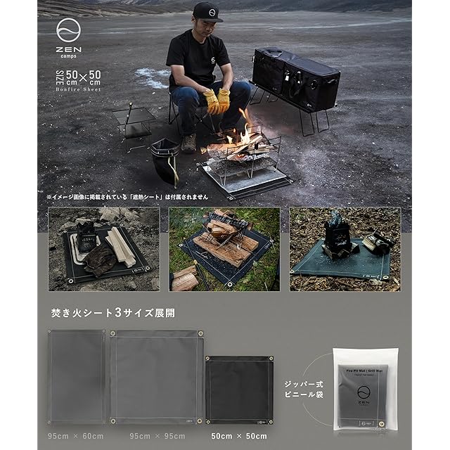 ZEN Camps 焚き火シート スパッタシート 焚き火台シート チクチクしない シリコン ブラック 黒 耐火 耐熱 防炎 防火 シート キャンプ 芝生保護【日本ブランド】 (50*50cm) | emishop315