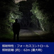 機能:2m落下耐久、耐塵・耐水仕様(IP66準拠)、最大照射距離:約62m