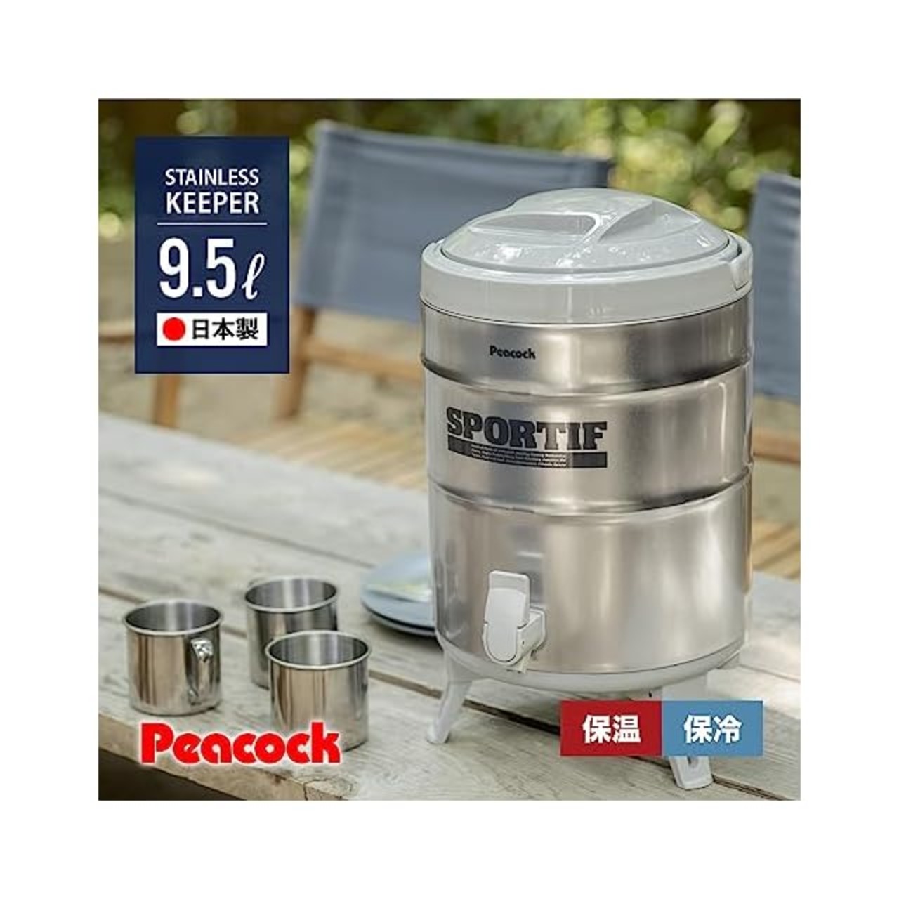 ピーコック魔法瓶工業(The-peacock) ピーコック ウォータージャグ 9.5L 日本製 保冷 保温 キーパー アウトドア キャンプ 大容量 ジャグ タンク ステンレス グレー 10L INS-100K H | emishop315