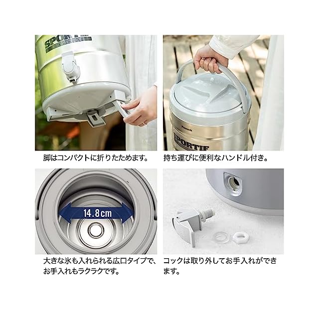 商品名:ピーコック魔法瓶工業(The-peacock) ピーコック ウォータージャグ 9.5L 日本製 保冷 保温 キーパー アウトドア キャンプ 大容量 ジャグ タンク ステンレス グレー 10L INS-100K H
