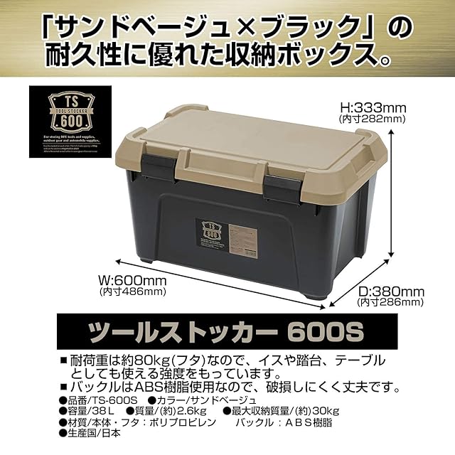 JEJアステージ 収納ボックス 日本製 アウトドア キャンプ 踏台 耐荷重80kg 車載 積み重ね [Sシリーズ ツールストッカー 600S] 防災 幅60×奥行38×高さ33cm | emishop315